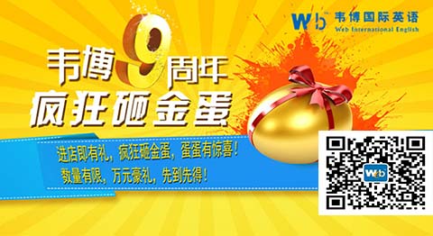 厦门韦博国际英语迎来了9周年庆,就是想告诉你,你的英文逼格和学习好礼都被我承包了!感恩这一路好朋友的关怀和支持!特此推出“砸金蛋,送好礼”活动: