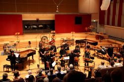 北京现代室内乐团受邀参加德国石荷州音乐节,这亦是2012德国“中国文化年”框架内的项目。乐团一行共22人,走访了德国的法兰克福、吕贝克、汉堡,共举办了五场音乐会,并与国际现代音乐领域享有盛誉的Ensemble Modern(德国现代室内乐团)合作,在其法兰克福的驻地进行了为期四天的排练活动,获得了难得学习、交流机会。乐团系列音乐会由中国器乐专场音乐会拉开序幕,乐团派出民乐演奏家小分队于8月7、8、9日赴德国北部港口城市吕贝克附近的三座教堂为当地观众献上了一台中国器乐室内乐音乐会,曲目包括传统经典与当代创作;8月11日,乐团全编制第一场演出在吕贝克音乐学院音乐厅举行,也是“第五届中国Con Tempo 新室内乐作曲比赛颁奖音乐会”;8月12日晚,乐团在NDR北德广播电台的Rolf-Liebermann-Studio音乐厅再次进行演出并为“第五届中国Con Tempo 新室内乐作曲比赛”第一名获奖者李博颁发了本年度“德国欣德米特大奖”。