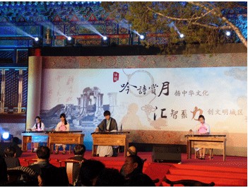 9月24日晚,在有着万园之园的圆明园内正觉寺大殿,海淀区区委暨海淀区人民政府隆重举办了题为“吟诗赏月扬中国文化,汇智聚力创文明城区”的大型“赏月联谊会”,中央文明办秘书局局长蒋希伟等100多名中央、市、区领导参加了大会。应海淀区文明办公室的邀请,清华附中金帆民乐团办公室胡军主任带领“清音雅韵”古琴社的同学为与会代表进行了古琴表演。