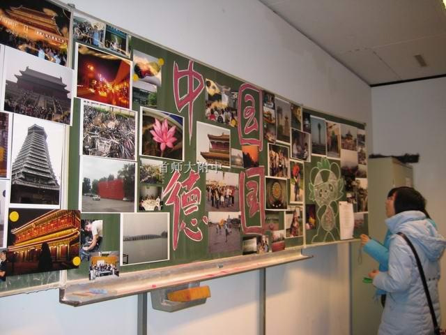 首师大附中高一年级师生一行12人圆满地完成了赴德国柏林门采尔中学的交流访问。由于门采尔中学校方热情周到的接待和安排,我们在短短地十二天的时间里,不仅走进了他们的课堂,参与了门采尔中学的校园开放日,从学校生活的各方面与德国师生做了更深入的交流,还浏览了柏林著名的景点:勃兰登堡,胜利塔,议会大厦,历史和自然博物馆;我们在体味欧洲的城堡文化和悠远的历史的同时,也有幸领略了德国著名海口城市-汉堡的风采。门采尔的师生们还为我们安排了丰富的晚间活动,蓝人乐团的视听冲击,现场篮球的火热场面使我们对西方的文化有了更全方位地了解。总之,我们在德国的每一天,都过得很充实,走在菩提树大街上,站在古堡的顶端,品尝着德式烤肠,倾听着柏林的故事,我们走着,看着,想着,其中的收获已化作一种领悟充实着我们的思想。