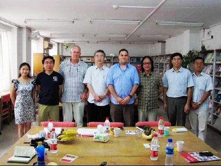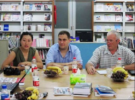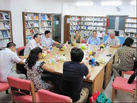会谈由姚国强教授主持,北京电影学院2011级电影声音创作与理论方向的硕士研究生赫铁龙同学担任了翻译工作。姚国强教授首先向刘易斯一行介绍了北京电影学院的与会人员,接着又对北京电影学院在电影学科方面的最新科研学术进展情况向来访客人做了介绍。随后,刘易斯先生也将Intellect学术出版集团出版的最新影视学术期刊、著作以及出版目录向北京电影学院专家进行了展示和介绍,并将最新出版的《世界著名电影拍摄地——北京》等有关影视书籍和相关期刊赠送给了北京电影学院图书馆作为收藏。该书作者约翰·贝拉先生也在《世界著名电影拍摄地——北京》一书的扉页上签名,并希望中国的影视读者能喜欢该书。