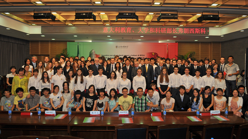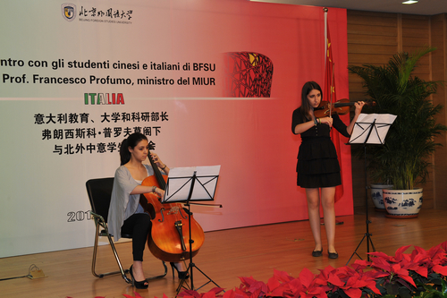 交流会上,普罗夫莫部长在我校领导和教师的陪同下,观看了孔子课堂学生的汉语学习汇报演出,以及我校学生用意大利语表演的歌曲及情景剧。活动在轻松、欢乐的氛围中结束,给部长先生及所有参加活动的师生留下了深刻的印象。通过此次活动,来访的意大利客人进一步了解了我校意大利语和对外汉语教学特色,为加强我校同意大利教育机构间的合作起到了促进作用。