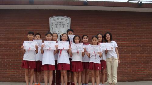 希望全体小学生向他们学习,再接再励,争取更好成绩,进入全国总决赛!另外,小学部英语组首次组织学生参加第十届海淀区英语风采大赛团体赛,取得了优胜奖的好成绩。