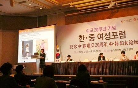中韩女性论坛是本次中韩妇女友好交流活动的重要内容。论坛以“女性与媒体”,“ 女性参与决策”为主题,来自中韩近百位学者和妇女界人士参加了论坛。中国传媒大学副书记刘利群在论坛上作了题为“可见与不可见:社会性别视角下的中国媒介现实”的主题发言。