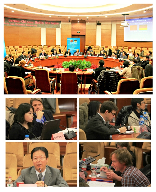 由中国传媒大学传播研究院、德国驻华大使馆、德国对外文化交流研究院联合主办的2012年“中德媒体对话” 11月29至30日在中国传媒大学新图书馆二楼圆形会议厅举行。2012年“中德媒体对话”活动的主题是“金融危机与经济报道”。来自各大报纸、媒体的记者、制片人和媒体主管以及来自中国传媒大学、德国新乌尔姆应用技术大学、帕绍大学的传媒教育学者共计20余人参加了本次会议。