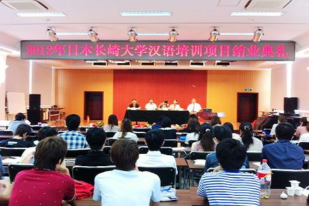 北京教育学院国际语言与文化学院承办的2012年日本长崎大学汉语培训项目9月20日顺利结业,北京教育学院纪委书记卢晖出席结业典礼并为参加培训的38名长崎大学学生颁发结业证书。在致辞中,卢书记充分肯定了长崎大学留学生学习汉语的热情,鼓励他们继续推进中日友好关系,成为中日友谊的桥梁。