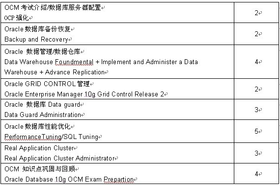 ORACLE10g OCM课程体系(25天)