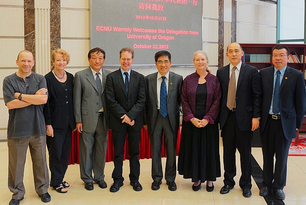 俄勒冈大学2009年9月与我校签署校际合作备忘录。我校每年秋季学期选派本科生赴该校参加国际教育实习项目。我校是俄勒冈大学孔子学院的中方支持单位;俄勒冈大学2009年11月与国家汉办签署备忘录,2011年3月与我校签署孔院合作执行协议,俄勒冈大学孔子学院于2010年10月1日揭牌开始运营。校党委书记童世骏于今年3月率团访问美国高校和研究机构时,曾到访俄勒冈大学,会见了俄勒冈大学教务长洛林•戴维斯女士和副校长丹尼斯•加蓬教授,并参加了该校孔子学院主办的尼克松访华暨中美上海公报发表40周年纪念活动。