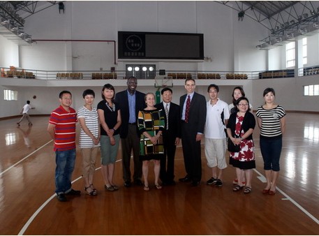 我校姐妹学校——美国Sidwell Friends School校长Tom Farquhar,高中部校长Lee Palmer,教务主任Mamadou 等一行5人访问我校。郑方贤校长、王德耀书记、张之银副校长及国际英文部常强华主任会见了客人,并陪同他们参观了校园,包括校史室、标本室、相辉楼以及国际英文部等。