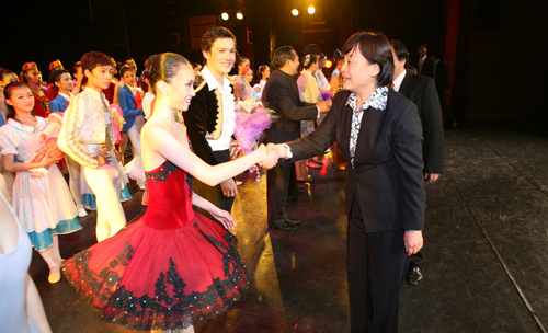 在晚会结束后,北京市 政府教育督导室副主任刘莉代表评估组领导、专家讲话,她非常感谢同学们带来的精彩表演,两位舞蹈界知名专家对母校的深情表白,使专家们受到了强烈感染和震 撼,他们是用自己一生的艺术成就来回馈培养过他们的母校的。“舞蹈家摇篮”孕育了如此多的舞蹈家,希望同学们坚定信念,在心里埋下舞蹈艺术的理想,踏着前 辈们成果的足迹,为成为优秀的艺术家而不懈追求。刘莉副主任还指出,艺术家不是艺术匠人,艺术家的肩上承担着太多的责任与义务,这就要求同学们要以前辈们 为榜样,将舞蹈艺术发扬光大。中国的舞蹈艺术不仅仅影响着中国人,也在世界舞台上占据越来越重要的地位。因此同学们更要努力学习,弘扬中国的舞蹈文化,并 起到传播和发扬国际舞蹈文化的作用。最后,刘莉副主任希望北京舞蹈学院附中的老师们能够培养出更多的舞蹈栋梁之才,也祝愿同学们能够在这里圆自己的舞蹈之 梦。